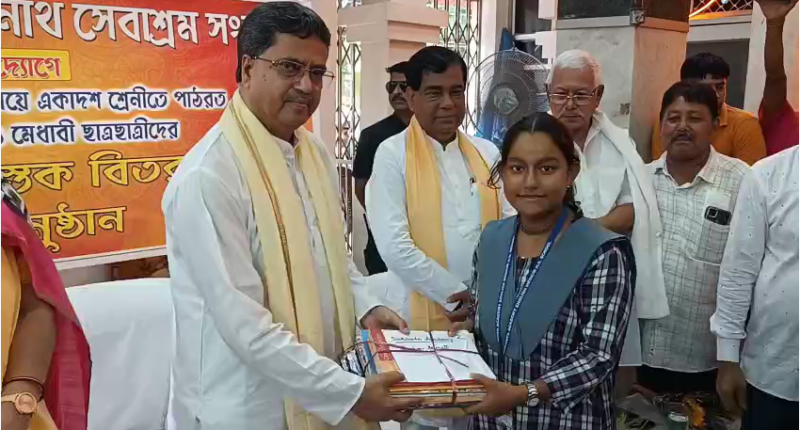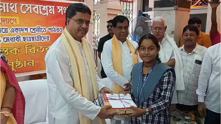 Dr Saha distributed textbooks among the underprivileged and meritorious students here in a function, organized by Sri Sri Baba Loknath Sebashram.