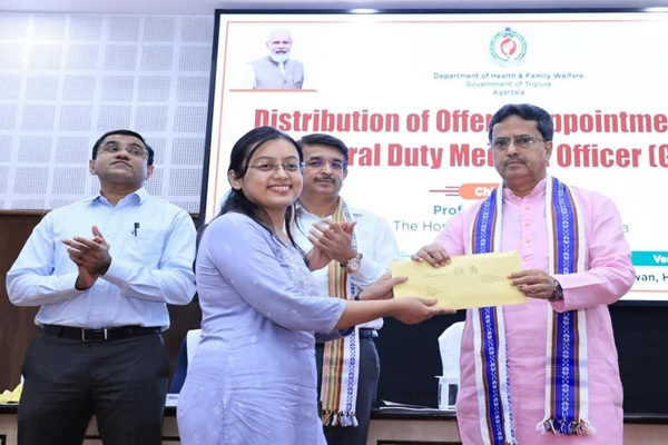 Health and Family Welfare Secretary Kiran Gitte, addressing the event, called upon the new officers to work with dedication in their respective institutions. Director of Health Services Dr. Tapan Majumder, School Education Department Director N.C. Sharma, National Health Mission Mission Director Saju Wahid A., and AGMC Principal Dr. Arun Kumar Saha were also present.