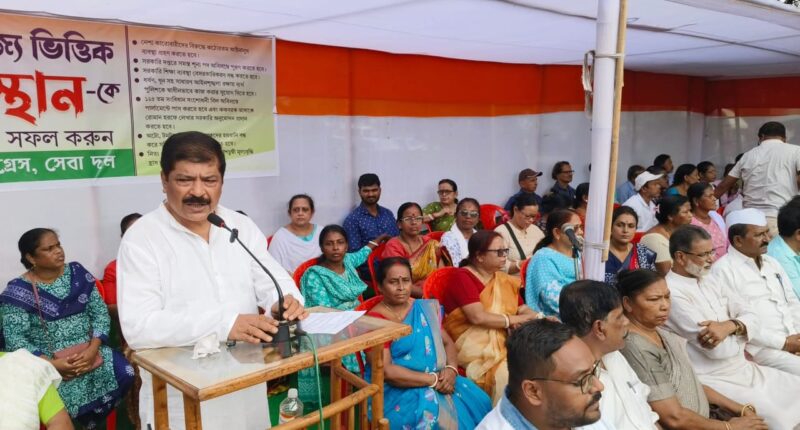 ত্রিপুরায় সাত দফা দাবিকে সামনে রেখে বৃহস্পতিবার যৌথভাবে ৪ ঘন্টার গনঅবস্থানে বসেছে যুব কংগ্রেস, ত্রিপুরা মহিলা কংগ্রেস, এনএসইউআই এবং সেবা দল।