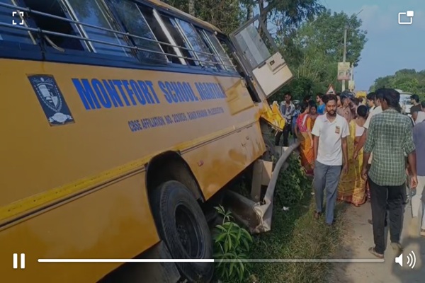 Agartala, Nov 7: A tragic accident occurred near the Amtali Bypass area on Friday when a private school bus belonging to Monfort School (registration no. TR01F4324, Bus No. 2) lost control and met with an accident along the National Highway. Several school students were reportedly injured in the mishap.