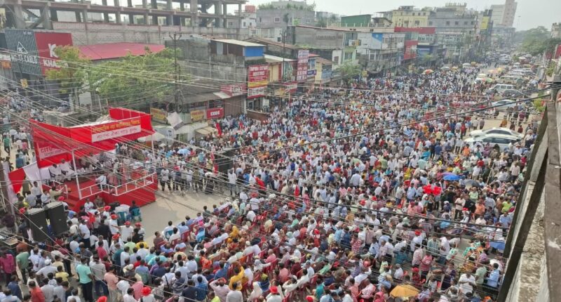 অন্যদিকে, সমাবেশস্থলে পৌঁছাতে কর্মীদের নানা বাধার মুখে পড়তে হয়েছে বলে অভিযোগ উঠেছে। আগরতলা রেল স্টেশন থেকে সমাবেশের উদ্দেশ্যে যাত্রা করা একাধিক যানবাহনকে আটকে দেওয়া হয় বলে দাবি সংগঠনের। ফলে হাজার হাজার মানুষ প্রায় আট কিলোমিটার পথ পায়ে হেঁটে সমাবেশস্থলে পৌঁছান।