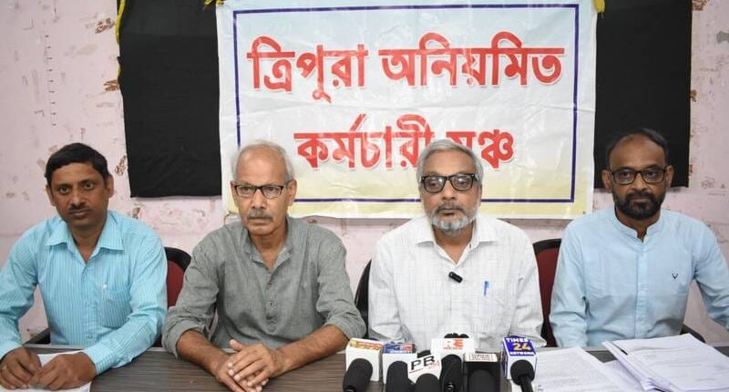 চাকরি নিয়মিতকরণের দাবিতে আগামী ডিসেম্বর মাস থেকে লাগাতোর আন্দোলন শুরু করতে চলছে ত্রিপুরা অনিয়মিতি কর্মচারী মঞ্চ। এক সাংবাদিক সম্মেলন করে এই আন্দোলন কর্মসূচির ঘোষণা করেন সংগঠনের আহ্বায়ক আইনজীবী পুরুষোত্তম রায় বর্মন। তিনি অভিযোগ করেন, রাজ্যে অনিয়মিত কর্মচারীদের চাকরি নিয়মিতকরণের বিষয়ে রাজ্য সরকারের কোন উদ্যোগ লক্ষ্য করা যাচ্ছে না। ৪ জুলাই, সংগঠনের পক্ষ থেকে মহাকরণ অভিযান করে মুখ্যসচিবের নিকট ৮ দফা দাবি পেশ করা হয়েছিল। মুখ্যসচিব দাবিগুলির প্রতি সহমত পোষণ করে উপযুক্ত ব্যবস্থা নেওয়ার আশ্বাস দিয়েছিলেন।