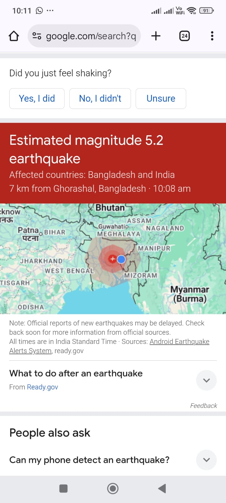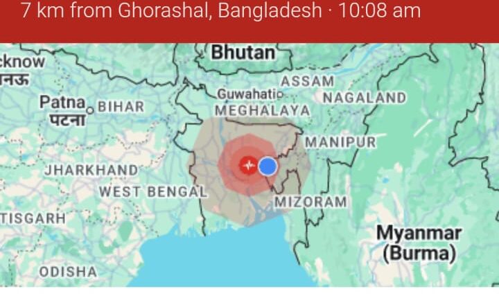 A moderate earthquake measuring an estimated magnitude of 5.2 struck the region on [date not provided], shaking parts of Bangladesh and eastern India. According to preliminary reports, the epicenter was located approximately 7 kilometers from Ghorashal, Bangladesh, and the tremors were felt around 10:08 am.