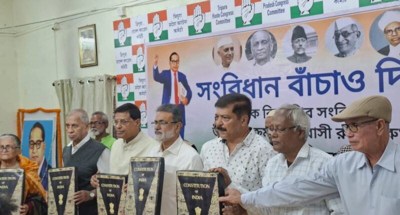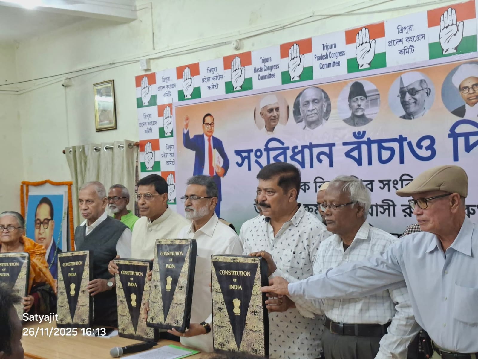 সারা দেশের সাথে তাল মিলিয়ে আগরতলার প্রদেশ কংগ্রেস ভবনেও বুধবার যথাযোগ্য মর্যাদায় পালিত হলো সংবিধান বাঁচাও দিবস। মূলত সংবিধানের মূল চেতনা, গণতান্ত্রিক অধিকার ও সাংবিধানিক মূল্যবোধ রক্ষার অঙ্গীকারকে সামনে রেখেই এই কর্মসূচির আয়োজন করা হয়।