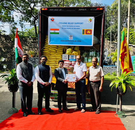 India has extended vital humanitarian assistance to Sri Lanka as the island nation reels under severe weather caused by Cyclone Ditwah. A fresh batch of relief materials—facilitated by the Indian High Commission in Sri Lanka—was handed over to the Chief Secretary of the Eastern Province and the Trincomalee District Administration on Saturday.