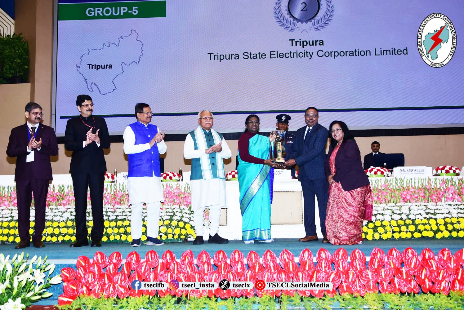 নয়া দিল্লীর বিজ্ঞান ভবনে অনুষ্ঠিত অনুষ্ঠানে রাষ্ট্রপতি দ্রৌপদী মুর্মুর হাত থেকে এই মর্যাদাপূর্ণ রাষ্ট্রপতি পুরস্কার গ্রহণ করেন টিএসইসিএলের কারিগরি অধিকর্তা সুবীর সেন এবং ব্যুরো অফ এনার্জি এফিসিয়েন্সি এর স্টেট ডিজিগনেটেড এজেন্সির নোডাল অফিসার তথা এজিএম সীমা দাস।