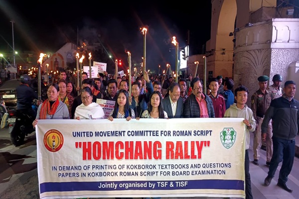 Reacting strongly to the Chief Minister’s remarks, Tipra Motha and its student wings announced statewide torch rallies. Addressing the protest march in Agartala, TSF leader John Debbarma said tribal communities had been denied the right to use their preferred script for nearly 50 years. “Governments are elected to deliver justice, but none have addressed this issue. Through this rally, we are making it clear that we will not tolerate further neglect,” he said.