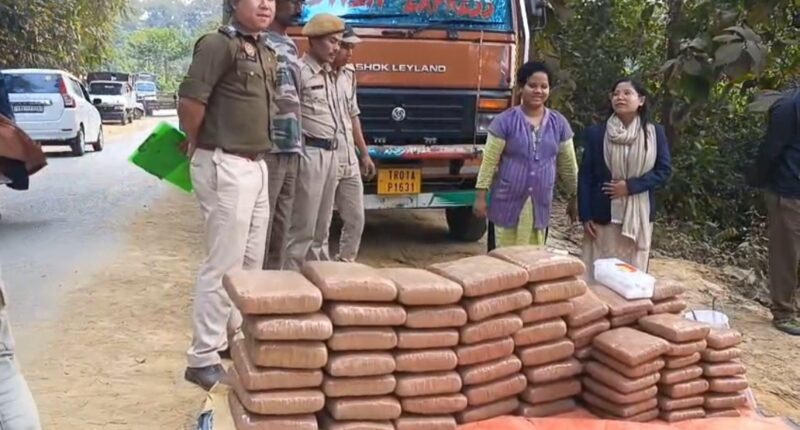Police on Saturday seized a huge quantity of dry cannabis from the Ambassa naka checkpoint in Tripura’s Dhalai district, once again highlighting the persistent challenge of drug trafficking through the state. The seizure was made during routine checking of vehicles at the Betbagan checkpoint under Ambassa police station limits.