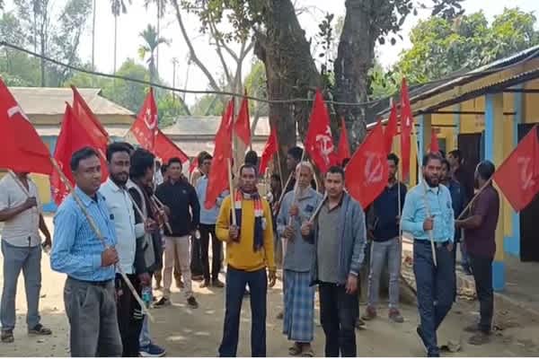 Kadamtala, February 12: The 12-hour nationwide strike called by Left-affiliated trade unions on Thursday witnessed mixed reactions in North Tripura district, particularly in Kadamtala block, where both supporters and opponents took to the streets.