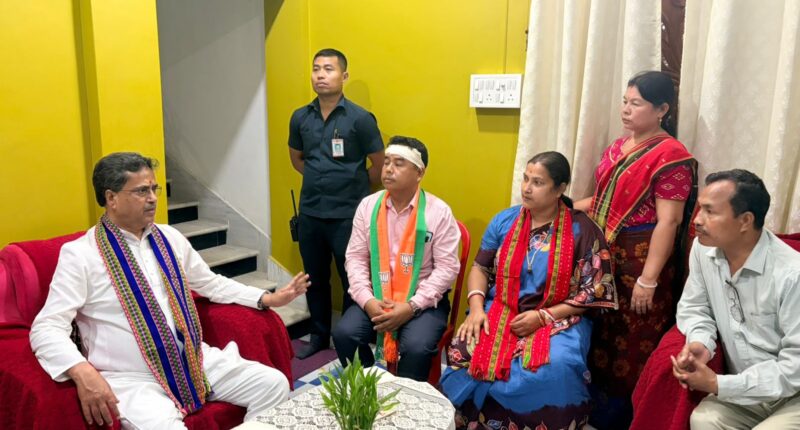 Agartala, April 8 — Chief Minister Manik Saha on Wednesday visited the residence of BJP candidate Majee Debbarma from the Pekuajala–Jamejoynagar constituency, who was recently injured in an alleged attack by miscreants reportedly linked to the Tipra Motha Party.
